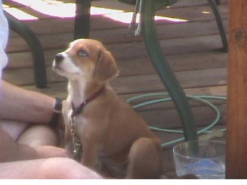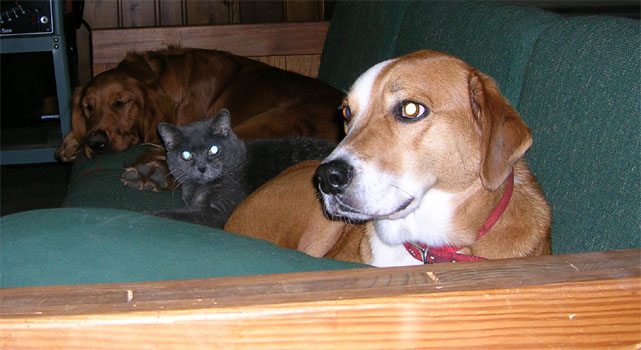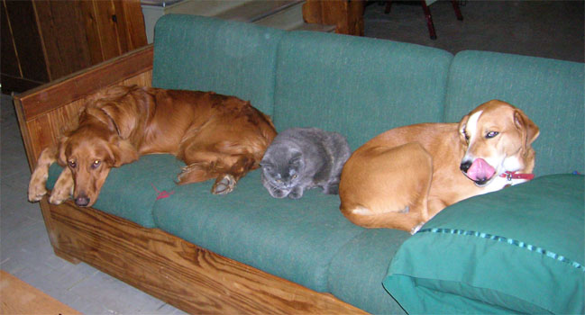 We have a senior cat named Bonnie and Maggie has always shown her so much respect that Bonnie now seeks out Maggie to cuddle with. She is definitely a unique dog and she is very intelligent. I know that I have mentioned how she likes to watch for animals on television, I think she sometimes follows the plot of some shows but has been known to fall asleep in front of the TV. I think that Maggie has very good eye sight for a dog based upon how perceptive she is of what goes on around her. She is definitely one of the smartest, cutest and most physically fit dogs I know of. Donât let the two new couch pictures fool you; I think Maggie could be a great jogging partner for somebody.