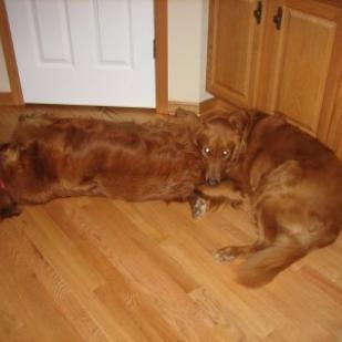 Hi Everyone! Maggie checking in. I visited Dr. Julie yesterday and got my once over. I'm proud to say that I had her completely fooled. She did not believe that I was 13.5 years young. I'm only slightly gray and, even though I weigh 112 lbs (I know, I know), I get around famously. Nothing bothers me. Not stairs, not getting up and down, nothing. I even try to jump a bit, but my front paws usually don't get more than two inches off the ground. Foster mom doesn't like it when I jump because she's afraid that I'll hurt myself. I do have some lumps and bumps, but they are all benign. Bottom line, I'm pretty darn healthy for a senior gal. Dr. Julie told me keep doing what I was doing, cause it obviously was working for me. She did say that it wouldn't hurt to drop one or two pounds (she may have said more, but I only heard one or two). I'm now microchipped (not that I'd ever leave your side) so I will always be able to be tracked back to RAGOM should I ever decide to wander off. Here's a picture of me in my favorite relaxing position. Foster mom (Bailey either) doesn't understand how it can be comfy for me, but I rather enjoy it. Oops, I heard "bed time", and that translates into "treats" for me.