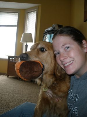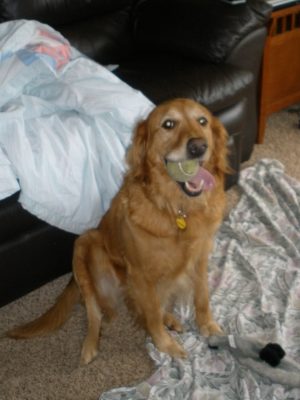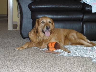 Maggie is a very easy going golden. She has been introduced to numerous animals in the neighborhood and besides wanting to chase the occasion rabbit, found to be okay with everyone. She adores car rides and playing ball (working on the giving the ball back part but got the retrieving part down).