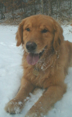 Just wanted to send an update on Max. We adopted Max at Thanksgiving, and he has fit into our lives perfectly! He is getting along very well with our ten year old Golden, Sam, adopted from RAGOM in 1996. Max is exactly what we were looking for. He's a beautiful big boy, and he is the gentlest dog we've ever seen. He rolls over to get tummy rubs whenever we reach out a hand! He lives to be petted and to chase tennis balls! Steve takes him out everyday to a park or to the frozen pond behind our house and throws the tennis ball so the dogs can retrieve and get lots of exercise. Max doesn't like the Gentle Leader very well, but he is learning. Having Max around has perked Sam up considerably, and he is more active.