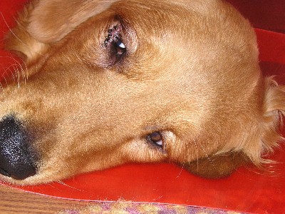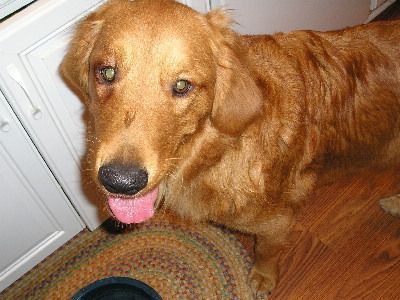 We found out more detailed news about Max's medical condition: a set of digital x-rays was taken of both elbows. Max's left elbow has moderate arthritis; and the right elbow has a somewhat severe case of arthritis. There is some scar tissue and cartilage build-up around the joint, which is the bump, or growth that is visible. There is also a lose bone fragment in that area, which is rubbing and causing some discomfort. Because of the previously mentioned, Max does not walk on the flat of his foot, rather he walks more on his toes, so his tendons are not being used like they should be. The vet made the following recommendations......switching to Hills Science Diet J/D food for his joints. He will need to be on a good glucosamine supplement, such as Cosequin, the rest of his life. He will also need to be on Deramaxx or Rimidyl for his arthritis the rest of his life. The vet was very firm in the fact that Max requires daily exercise to keep the muscle around his hips in the best condition possible. He determined that Max does have an entropic eye lid.