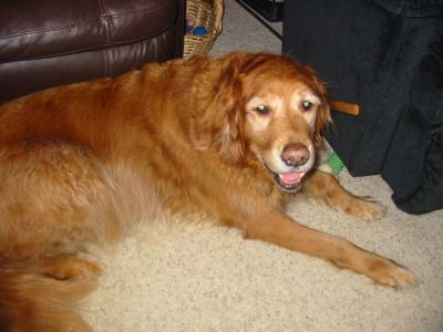 2/23/07: If you are looking for a mellow, easy, low-maintenance dog then you had better get ready to email placement - this boy is going to go FAST. Max arrived this afternoon and boy oh boy - he is such a sweet, mellow dog. Max is 7 years old and his family was very, very sad to give him up. They loved him dearly but their family circumstance made it impossible for them to keep him anymore. He comes from a house with kids, dogs, and cats so he's used to just about everything! Max is a little overweight right now so will need a little doggie dieting along with nice long walks to slim down a little. I would guess (don't hold me to this!) his target weight would be around 65-70 lbs. Maybe a little more.