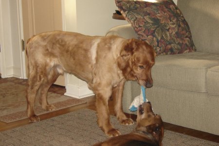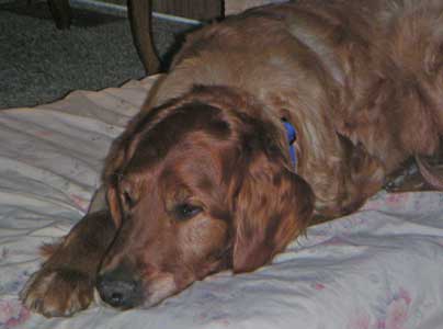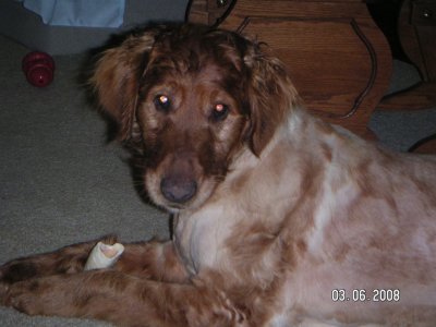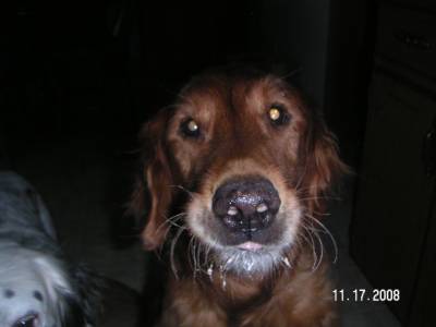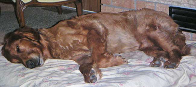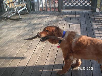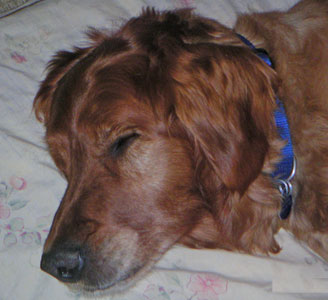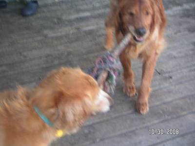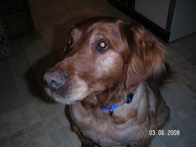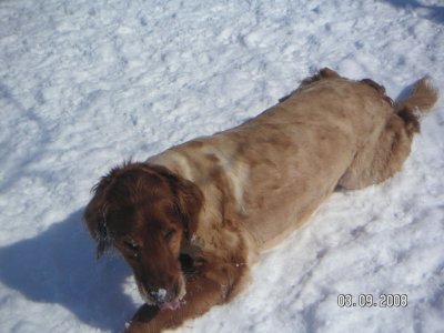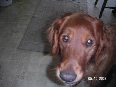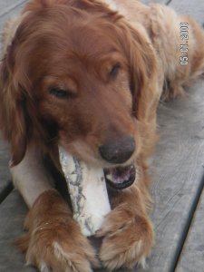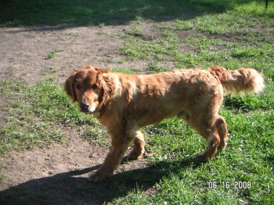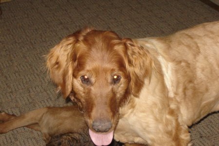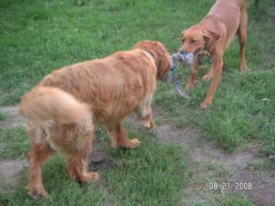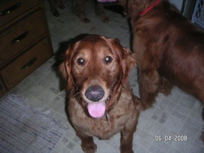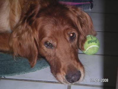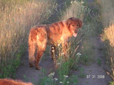 Life is good, playmates are good to have, but some one on one with his humans is better. He is a companion to both dog and his humans. His coat is coming in and by fall it should be as beautiful as that big red head of his :) Sometimes words can't explain a dog's personality except to say he's as good as it gets.