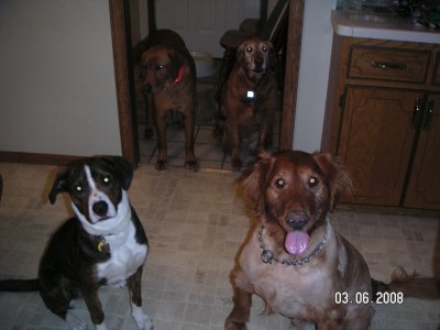 I'd like to take a moment to sumarize Maxie Man. He was with the same family all his life; lived outdoors; is now a total indoor dog; he is so undemanding, and his favorite things are to greet you by putting his head between your knees (or thereabouts:) and is always on the lookout for food. That is his achilles heel.....and if there is anything he is able to get into, he will. Examples: I keep food in cleaned litter buckets in the kitchen so I don't have to be trouncing around each feeding time. I typically put the buckets up on counters or the other side of the gate. I have forgotten twice and both times Max the Man has chewed the covers and got them off. This of course meant anyone who had free range in the kitchen/hall area also had free buffet thanks to Max. Max discovered there were 2 bags of dog food in the laundry room closet, opened the door, ripped open the bag and again...buffet. He may be a bit hard of hearing, but if it involves the fridge, pots/pans, cupboards opening or even walking up to a counter...he's there:)