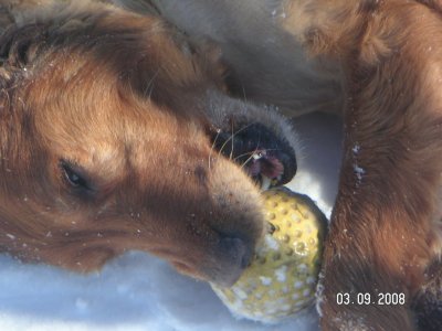 Hi Maxie Man here.  Well, thought I'd send in a quick update since foster mom is busy.  I have been enjoying the nice weather...up until today:(  Oh well it's too early for snow to last...right?  We had a new foster here for a while (she has already found her furever home) Ginger 08-518, and she would sometimes play tug with me.  She is more frisbee crazy and I thought it was a stupid game so didn't play.  I have some new non destructable toys, but they aren't as much fun as the tennis balls.  Now those I can defuzz and eat in nothing flat.  FM lets me play with the tennis balls as long as I will retrieve and bring back.  Jeesh soon as I do a little nibble nibble..........she's got that ball gone.  Mean foster mom!!!!