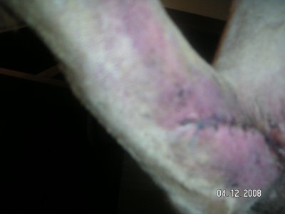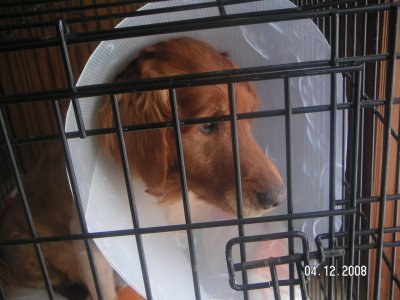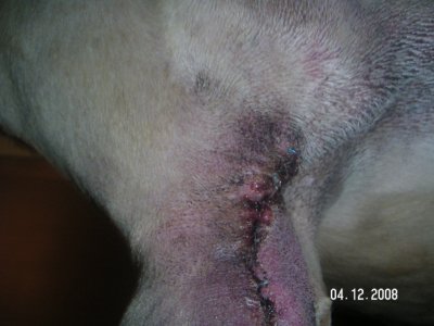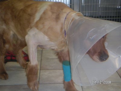 Max had surgery on Monday the 7th to remove a fatty growth under and around his right elbow area. He stayed with another foster mom, Konnie, until I got back in town and met her on Thursday a.m. She said that morning he had blood in his urine and should probably be seen. I took him home, settled him in and ran into work, spoke with the vet and made an appointment for late afternoon.