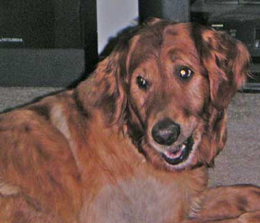 Max does not do the GR paw thing, you know pawing at you for attention. He will come over, sit down and look at you. Then if you talk low and quiet to him, many times he will 'talk back'......it starts like a low rrrooooo and then gets a little more verbal. He's not a big barker, he listens, he doesn't have accidents in the house and is just content to 'Be'............with you, alone, with other dogs, whatever the situation offers. He's not a runner per se, loves to go for walks and is pretty good off leash (don't tell anyone I said that) and will follow resident Jake around when out and about.