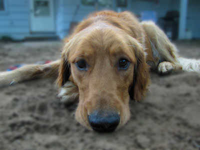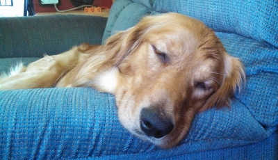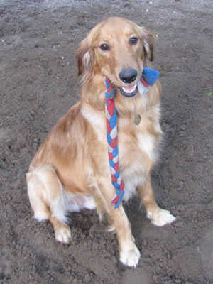 Max is a young one, so he has a lot of energy. He will jump up on you when really excited. Some of those Golden Retriever traits he has, follows you room to room, laying down by your feet. And loves to carry socks around in his mouth. He isn't to enthusiastic about playing fetch in the backyard. Sometimes he'll bring it back, sometimes he won't.