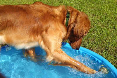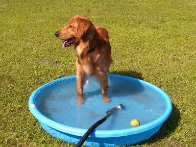 Max loves to run and play fetch with balls or a Frisbee. He will let you take the ball from him no problem other than playing a little keep away. Max loves to play with the ball in the kiddy pool and splash around.