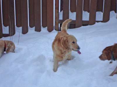 Now that we are past the 2 week mark Hunter is back to full activity. He absolutely loves to play chase in all of the snow we have. He and Indy really like to run full throttle at each other in the back yard. I think before long Hunter will soon join in on the wrestling matches that Indy and Lauren have.