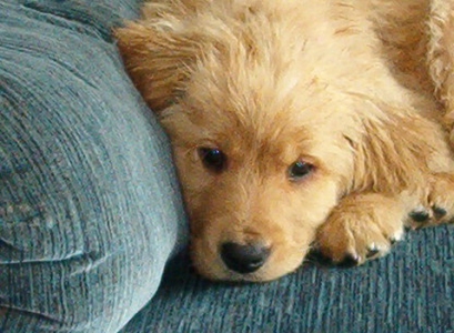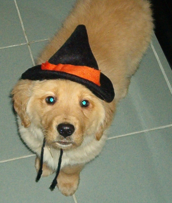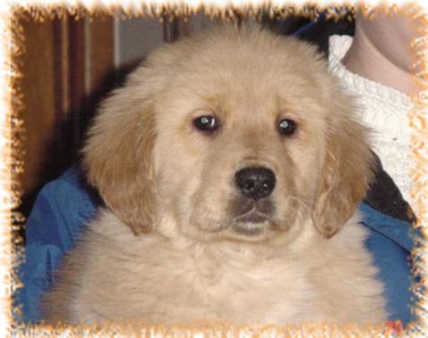 Meg....we call her Maggie Mae. She is a wonderful little girl. She was born on 11/05/2004 and is a papered AKC Golden. By the looks of her ears she will have the Golden color to her. She has yet to see the vet but will see him next week. She is very smart and will pace at the door and sometimes bark when she needs out to potty. She has learned the Hurry up (HRUP) command to go potty . She is a typical puppy and chews, but we have enough toys for her to chew on. She has diarrhea right now but seems to be very healthy otherwise. She is calm and loves to cuddle. This little girl has a lot of potential with the right person or persons that will be dedicated to train her. More updates after the vet visit.