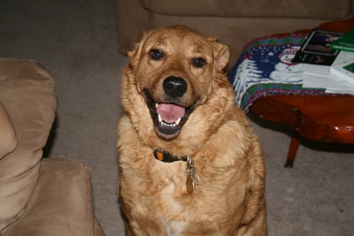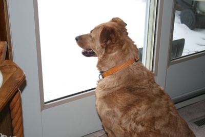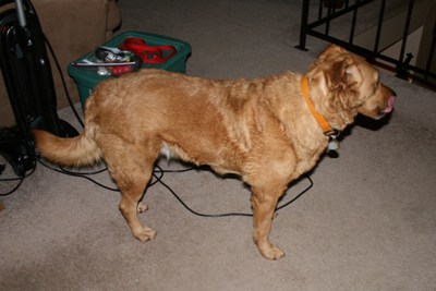Missy has been with us a little over 24 hours now and she has been a complete lady and a great house guest. She is fully house trained and gets along fine with the resident boy dog and also the resident cat. Missy is a Golden-Mix that weighs about 65 pounds. She is not demanding at all in fact we don't even know she is here sometimes. Missy has a bed that came with her and she will just go and lay on it when she is tired or bored. She loves to be outside and loves to watch the birds and squirrels out the back door. She whines by the door when she needs to go out, and slept all night on her bed in our living room.