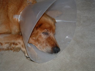 Molly will go back to the vet sometime around the 4th of September to have her staples and stitches removed.  Right now, she has to wear that funny looking e-collar (plastic cone) as a precaution to keep her from licking her incisions.  We try to keep her calm and comfortable to speed her recovery.  My heart goes out to this poor sweet girl that has gone through so much. She's on the mend though!  We pray that her lab results do not come back as cancer and that she gets healthier each day that goes by.