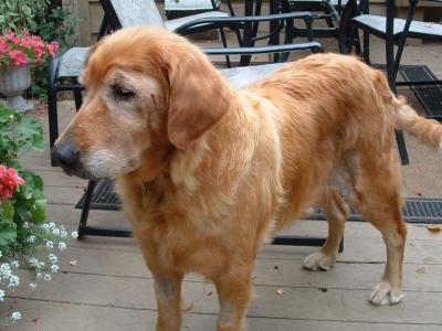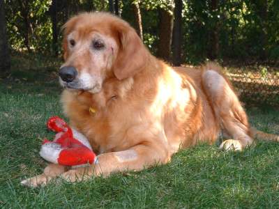 Molly's fur will be growing back in the areas where she's been shaved and the loose skin on her belly from having many litters of puppies will tighten up over time. She has the classic golden retriever look and is a beauty to behold.  Molly is a nice companion and will make a wonderful pet for someone!  Come and visit with us at the RAGOM picnic!