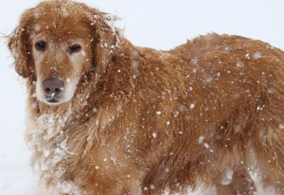 Molly is 5 years old and was used as a breeding dog.  We are told that she has had several litters of puppies and was not living in the best conditions.  Despite this, she is good natured and met our 2 resident female dogs with absolutely no problems.  She is not skittish and enjoyed hanging out in the kitchen with me this afternoon while I cooked, despite the noise and constant activity.  I'm sure the cubed cooked chicken I was feeding her helped.  She has that wonderful golden attribute of wanting to be close to her humans.