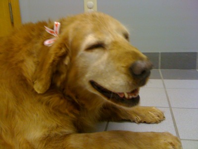 I took her to the vet this afternoon. She has a few large lumps that may need to be tested. Some blood was drawn and the results should come back next week. Her weight is a bit high, so she will be on a diet. Losing some weight should lhelp with her legs too. It is hard for her to get up when she has been resting for a while. She is stiff and it takes a while for her to warm up. She needs help getting into the car as her back legs are weak.