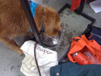She went to book group with me last night. She laid down under the table where she had access to many people’s hands. I think that she got petting for most of the session. She gets so happy and excited when she gets to go someplace with me. She bounces on her front legs like a puppy. She is sweet, sweet, sweet!
