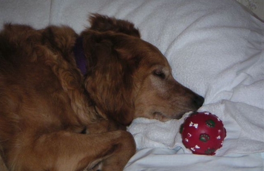 Then we talked about how he used to have to greet me at the door with something....sock, shoe, sandal, toy...didn't matter. Just so happy to see you. And how he loved to sleep on the bed with his head on the pillow, or with head under something...bed, desk, pillow, you name it. His other favorite thing to do was gather all the toys and bring them to the family room and put them under the coffee table near him. He was one of the sweetest, most gentle, loving souls I've ever met and he had the best time of his life the short time he was with Cliff, Sue and Joe.