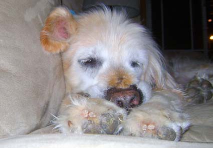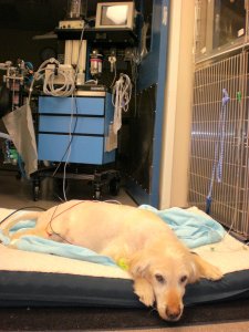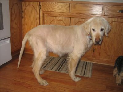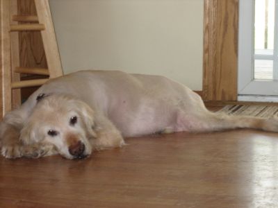 Cushing's disease. The docs wanted to make sure this was the case so Chips went in for a day of blood tests early last week. We brought him in the morning and they took a baseline blood sample. Then they gave him an injection and checked his blood at 4 hrs, and 8 hrs. later. This was a test to determine what type of Cushing's disease he has. The results were consistent with an adrenal tumor. Which in the case of Cushing's disease is actually really good news. (It is weird to talk of tumors as good news!) The next step for Chips is to have the adrenal gland with the tumor removed. We are still awaiting the final scheduling details of the surgery, but I am hopeful that we will know when the surgery will happen early next week. There is a higher level of risk associated with this surgery, mainly after the surgery, more so than the surgery itself. The adrenal glands regulate many things in the body and when one of them is removed it can become risky after surgery... as the blood pressure and other levels must be closely monitored. But, Chips will get the best possible care... so we know he will be in great hands. It will be a very scary day for foster mom nevertheless. Chippy has a great prognosis though! His heart and lungs are so strong, and the tumor is not invading any other organs or vessels. After Chippy has this surgery he will be good as new!! He will no longer show any Cushing's disease symptoms! He will go back to having a furry coat, and he won't be constantly hungry and thirsty. Which will be great for him. I cannot wait for him to live symptom free! As always, I will keep everyone updated on the medical stuff as I know more.