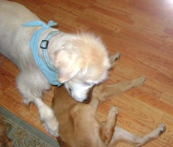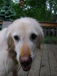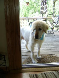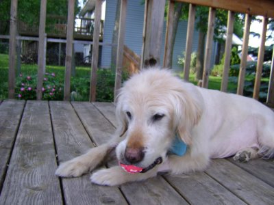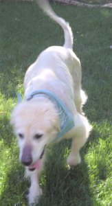 Two weeks post surgery, and counting!! We are thrilled with how Chippy is doing :) He went in to have his stitches removed today, and things look great! We have started to taper down his steroid medication and in two short weeks he will be medication free! As we taper down the steroid meds the Cushings symptoms will begin to disappear. I have already seen a difference in his water consumption. Right now, the amount of steroids he is on are mimicking his Cushings disease symptoms. Since the tumor caused the release of an excessive amount of steroids in his system, taking that tumor and gland out cut that out all together. It would have been too much for his body to just deal with cutting the steroids out "cold turkey". So, we have to wean him off the steroids gradually. The only other medication he is on now is a low dose aspirin to help prevent blood clots. This too will be eliminated in about two weeks. Chippy went to stay with a fellow RAGOM foster this weekend (THANKS Auntie Dayle!!!!!!!) He was a pretty good house guest. Although, he did help himself to some pie! I had to laugh as Dayle was telling me about his mouth being all blue from the blueberry/raspberry pie :) Naughty boy! He is a funny guy, and will find a way to help himself to anything he finds tasty. He is a puppy in that way... and is really his only bad habit. I am hopeful this behavior will also subside with the other Cushings symptoms. Other than that, Chips did great! When I picked him up he had an adorable scarf on that matches his collar - I'll have to get some pics! Also, he was walking around with squeaky toys! Something he hasn't done for awhile, so he must be feeling really good. He wagged his tail in circles for me when I picked him up and gave me a few kisses, so that was nice :) I am so thankful for Dayle and Scout and Skye for taking such good care of Chippy for us :) Chips seems to be more playful, and just feeling really good. Your thoughts and prayers are working! Thank YOU! Also, Thanks to RAGOM and his sponsors, I think he is well on the road to recovery, and feeling like he deserves to feel, this is because of your help! Thanks for reading!