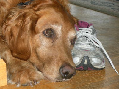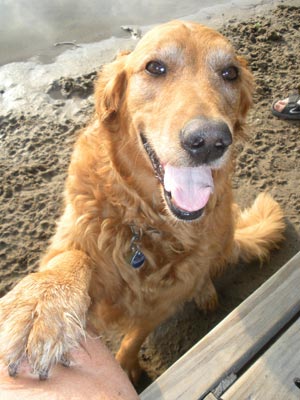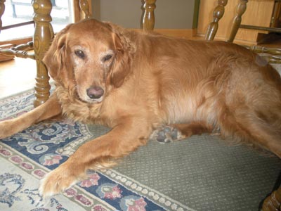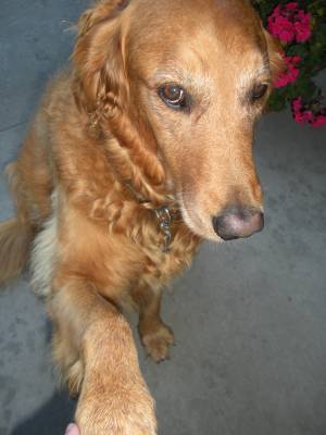 He had the sweetest disposition of any dog we have ever had, (and there have been many, most of them goldens). All he wanted was love, and all he gave was love. If he wanted to be pet, he had a habit of gently pawing you. He taught this trick to Belle, but nothing about Belle is particularly gentle. Still, it is a little reminder he left us with so we can remember him every day.