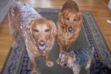 It is with great sadness that we have to let you know that our best friend and companion, Murphy, crossed over to the Rainbow Bridge on 12/22/09, at the very young age of five. He came to us a little bit less than two years ago, but he fit into our family so well that it seems like he has always been here. He was skittish when we initially adopted him, as he had been raised and kept in a garage. Little sister, Belle (let’s call her golden retriever Alpha-dog), taught him the ropes, even though she was still a puppy herself. Of course, older sister, Lucky (let’s call her 12-year old Crabby Yorkie), assisted as only an older sister can.