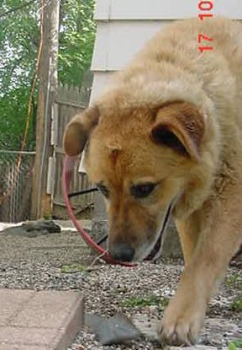 9/17/05: Neville is 4-5 year old who happens to be prematurely grey (per his RAGOM vet). He's fully house trained, neutered, up to date on vaccinations and a dog who someone must be sorely missing. His vet's conclusion is that he has either Husky or Samoyed ancestry mixed in with his primary Golden Retreiver breed.