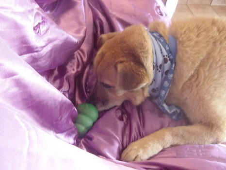 Today, day 12, Neville decided to let us know that yes, he does like tennis balls, and yes, that big tug rope will be lots of fun when his mandatory 'quite time' recovery is up. Today, for the first time, NEVI PLAYED!!!