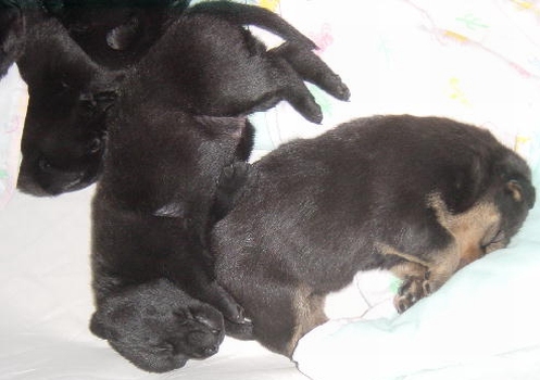 Our little Labor Day puppies are now 4-1/2 weeks old and adorable little furballs. They are starting to play with each other, but their favorite thing to do is to climb all over you. Thereâs nothing quite like sitting on the floor and having 9 puppies crawl all over you! You have to smile and giggle and love every minute of it.