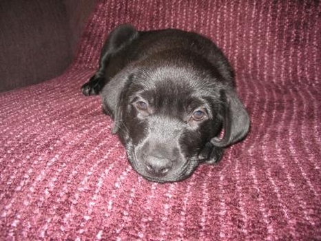 Well, Ole and Molly have been with me for about two weeks now and are just the most wonderful puppies ever! Ole is definitely the more dependent of the two and doesn't really like being alone. He is quite a bit larger than Molly, growing into more of a male-stature dog physically, but he's still just a baby inside. I call him My Little Swedish Boy because I just love his name. Sometimes when he and Molly are playing, he ends up crying and looking over at me. I can just imagine him thinking "Mommy, help me. Molly is hurting me!" Ole is very social. He just loves everyone! He likes to be held and has always been very gentle when chewing on humans. And when he curls up next to me on the couch, he makes this little grunting sound as he falls asleep. Precious!
