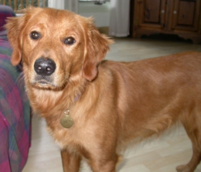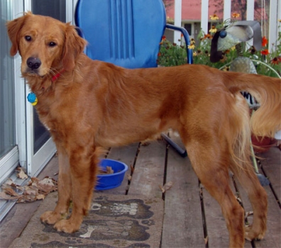 Otto is a very lean, athletic Golden, about 35 lbs. His coat is a medium-red color and he has the cutest, square face. Otto is a very happy boy and loves to be wherever we are. He'll follow us up and down the stairs, even if we make 4 trips because we forgot something. I made a few extra trips last night to see how long it would take him to catch on :) As smart as he is, I thought he would figure it out...I guess not. He just wants to be wherever we are. He's a total Velcro dog!