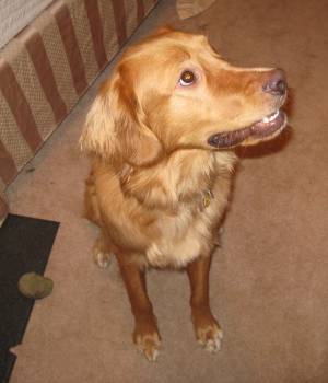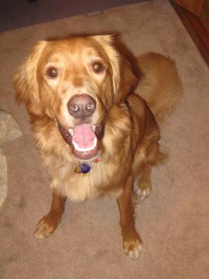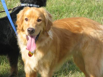 I really like this dog.  He is beautiful, loving, sweet, and he has the softest fur of any dog I have ever met.   He looks all Golden, but he is mixed with Brittany Spaniel.   He is a beautiful blond color and has white paws.  He really could not be any more cute!