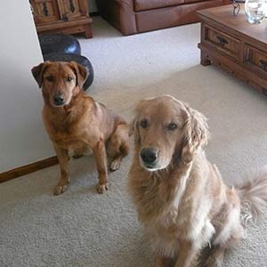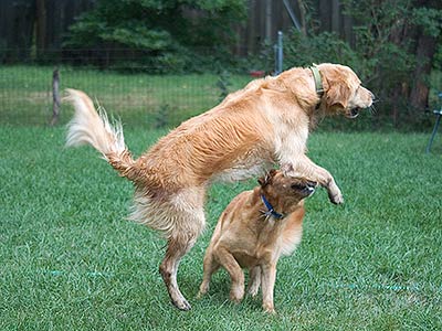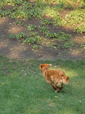 Ozzie is getting along great with our 6 year old resident Golden, Jedi. They have already become good buddies and haven’t had any barking or snapping at all. He met the neighbor’s dog, Max, a 2 year old Golden. Max and Jedi both wanted the same ball while playing even though there were six balls in the yard! These youngsters, just like kids, need to learn to share. The more “mature” Jedi just watched with muted amusement. Mentally, Goldens remain puppies for a long time (up to two or three years of age) and many are playful and clownish for most of their lives. Ozzie still has a few more years to grow up!