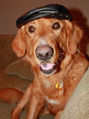 Enjoy my new pictures. One is of my handsome self playing ball outside. Foster dad throws the ball really far with this ball thing and I go catch it (my favorite!) and the other is when foster mom thought she could play dress up with me.