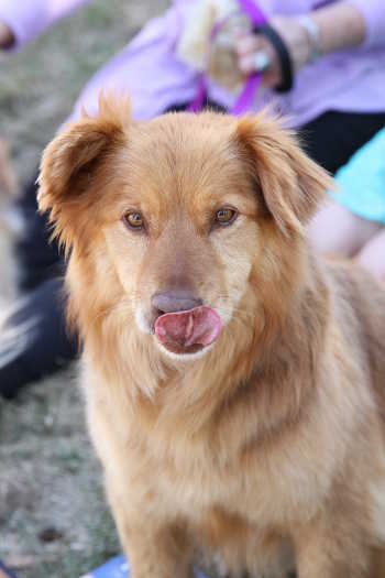 Polly is a petite Golden mix that was found as a stray in Bismark, ND. She was being held at a local shelter and when her time was up, they contacted RAGOM to find her a forever home. She is about 31 lbs with short legs, the cutest little feet, floppy ears (one up, one down), and a beautiful coat of ruby and brown.