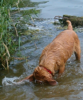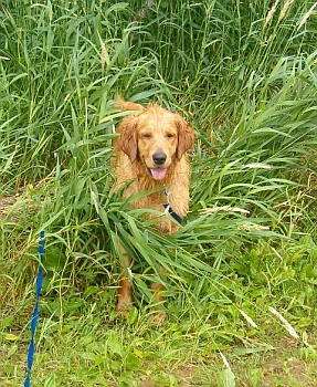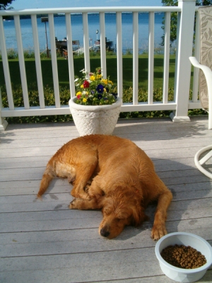 Salli just returned from a few days of rest and relaxation in Detroit Lakes. Salli is such an easy dog to travel with. She still needs a boost to get in the car, but then lays right down and doesnât make a peep. She thoroughly enjoyed visiting âFoster Grandmaâ who lives on the lake. Salli is usually so calm and laidback, but get her around the water and she sure perks up. She absolutely loves swimming and playing in the water. As you can see from the picture, she was too tired to even eat!
