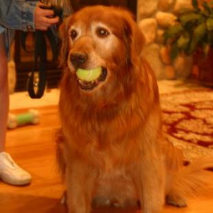 My name is Quincy.  I am being fostered in Stillwater.  I am a very sweet, gentle, well behaved 12 year old purebred Golden Retriever.  I may have a little grey in my face, but I am still have some puppy in me.  I love to play ball.  I even played soccer with the kids yesterday.  I like to carry a tennis ball around with me on my walks.  I just saw the vet today and he said I was healthy other than needing some teeth cleaning.  I go up and down my fosters 2 flights of stairs to sleep by their beds at night.  I am a little overweight, about 90 lbs, and I am a very polite beggar.  My foster dad calls me "big bear".  My surrendering family wishes me to have another dog to play with.  My fosters say I am the easiest dog they have ever taken care of.