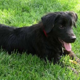 6/26/07: Reuben has had a busy couple of days. After a long ride from a Missouri shelter, he was a bit overwhelmed. Reuben is a Golden/Flat Coat mix, and he is a doll. The Vet thought the was between 6 1/2 and 7 months old. He is a healthy, happy guy. He needed, and received, a bath right off the bat. He is cautious, but growing up in a shelter probably has a bit to do with that. The first day and a half he wouldn't go through a doorway without being carried. Now he goes through them with very little hesitancy. When he realized he was going to have a foster sister (Sassy) and a foster brother (Wyatt), he really came around. He decided he wanted to be Sassy's very own shadow. It was good outside, but Sassy isn't a fan of being followed around in the house. Reuben is learning about manners and dog etiquette. He is a pretty quick study. He is a fan of having doggie playmates. He is crate trained and mostly housebroken. He did have one little accident in the house, but otherwise he has been a good boy. I don't think it will be long before that is a thing of the past. He is wary of new people and keeps his distance until he gets to know you. Sit down, bring a treat and you'll have a buddy. He likes to be around his people but so far hasn't needed to be sitting on you. He has discovered that the resident dogs definitely have the right idea about the couch and the bed. Once Reuben gets settled in you can hear what he has to say about his adventures.