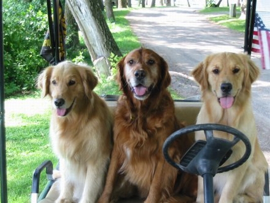 Thanks again for all that you do to save this special breed! I've attached a picture from this summer with Rex and his doggie cousins sitting on our golf cart up at our cabin.