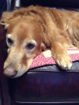 Riley has been an amazing dog. She was docile, quiet, and loving. She had no noticeable arthritis, her hearing and sight were sharp, although she had early cataracts. She could jump up onto our big bed from right next to the bed, with no running start. She was tolerant of our young grandkids. She loved to lie on a pillow. She hated thunder and fireworks, although a thunder shirt did help. This past Monday morning, Riley ran like the wind to chase bunnies. About midday, she seemed different. She could not bend down to her water dish, but drank when I lifted it to her. She could not stand on her back legs. We took her to the U of M, where they said she was "spacially disoriented". They offered to do rather extensive diagnostic tests, but the vet admitted that it was very unlikely that she would be diagnosed with a durable, or treatable condition. We made the very difficult decision to help her to the Rainbow Bridge. We stayed with her, fed her some chicken, which she loved and watched her at peace. We miss her so very much. We appreciate all that RAGOM does to give these beautiful animals the love and home they deserve. Thank you for the wonderful gift of Riley. |