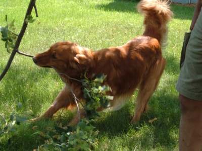 Rio is recovering nicely from his surgery-Rio was neutered on Monday, July 1st. He is settling in just fine. Rio had the opportunity to meet a very friendly male dog this weekend. Rio was not overly excited right away; he did do a bit of growling and snapping, but with some redirection and time the 2 dogs were off and playing-having a great time. When they weren't playing they ignored each other. My plan is to get Rio around more dogs to see if this is a consistent behavior for him.