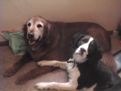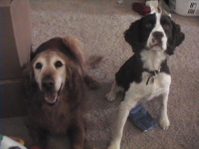 Well, Robbie (as his owners called him) is doing wonderfully on his second day at our house. We have learned a lot already about him--for instance, in Robbie's IDEAL forever home, there wouldn't be many stairs due to the fact that he REALLY wants to go with you upstairs to sleep, but his poor legs don't like to let him, and he gets very sad. He can make it up, but he has to stop along the way a few times to catch his grip. Another of Robbie's comical characteristics is that when he wants you to play with him, he will go grab a toy, and come up to you and growl. And, if you're not expecting it, you might think he is growling because he is guarding toys, but that is NOT the case. His former owners sent a note along that explained this, he is just talkative. He absolutely LOVES my kids (ages 1 and 3), he doesn't bother the cats at all, just lets them go their way, and so far we've had no problems with our 1 yr old male springer or our 10 year old yorkshire terrier. Robbie seems to get along with everyone. In his previous home, he did not enjoy going swimming at all. But does like to take a bath. We will be taking Robbie to the vet to get a clean bill of health before he will be ready for his forever home. Stay tuned for more updates!!