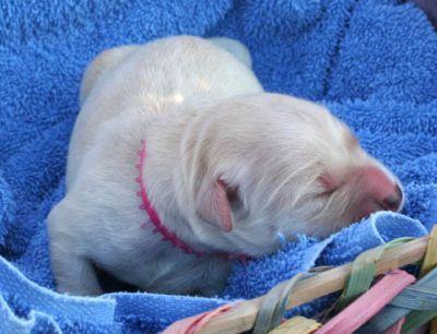 Since I can no longer tell which puppies were born here and which were born at the hospital, we weighed and colored them again as soon as we got home and Rose was 1 pound 1 ounce.  The puppies ranged from 14 ounces to 1 pound and an ounce.