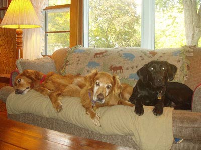 Greetings from Golden Valley! Rosie had fun enjoying the beautiful warm fall weather last week and now that winter has arrived she doesn't seem to mind the cool temps at all! She is such a little sweetheart and we fall more in love with her every day! She is very affectionate and grateful for everything we do for her. She is happy just to be in the same room with us and loves being a pampered indoor dog! Of course my dogs have showed her how to sleep in comfort on the couch and bed! I don't know why I bothered buying dog beds--I rarely see any of the 'Three Amigos' on them!