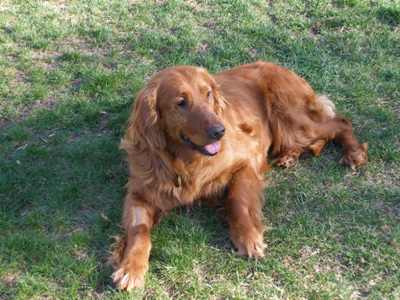 Today Ruby was moved into her new foster home with her veterinarian! What a lucky girl. Now she is spayed, micro chipped and had her tumors removed (still awaiting results). We couldn’t believe how Ruby loved it at her new foster home. It was like she had dreamt about it or something. She fit right in. She figured out the dog door to the gorgeous backyard right away! She also seemed to like the resident dog, Cedar. What a pretty gal! It was tough for us to let Ruby go but we knew we were doing the right thing for her. Her new foster home is more than perfect! She can now focus on love from humans and dogs and forget about cats! Plus she can also get all the veterinary care that she needs! Ruby’s forever home should definitely NOT have cats, small animals (even small dogs), and not small children. She is a great loving girl, who enjoys tummy rubs, snuggling, and petting. Ruby just still has many signs of her puppy mill past that we know she will overcome with time and love. For example her body posture is typical of that of a puppy mill dog, holding her head really low, tucking her tail, avoiding eye contact, etc. With time at our home she began to look us in the eye and even relax enough to wag her tail! She needs a quiet home with patient humans. Ruby will make an excellent companion for the perfect family. Did I mention how beautiful she is? If you think you can provide the right home for her please email placement