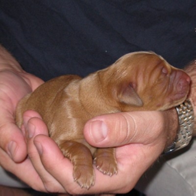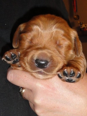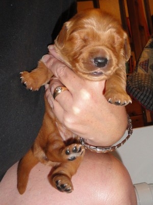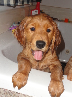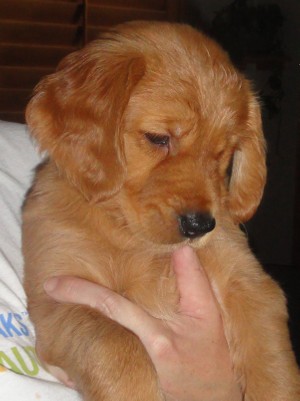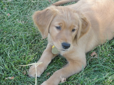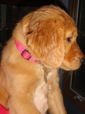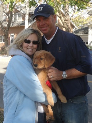 Before you go, check out the picture of me on my birthday compared with what I looked like today in the yard! Then check me out with my new Mom and Dad… I think they like me!