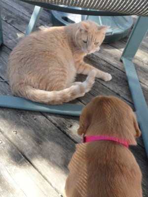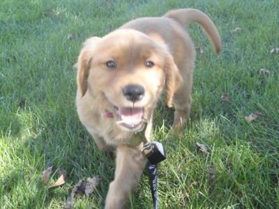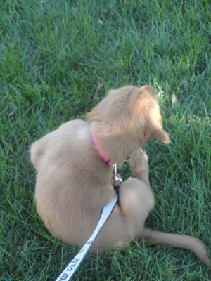 I’m outta here! Not even a lingering backward glance for FM! She and I took a road trip to see my new family this morning and as soon as she got me hooked up on my leash I was out of the car and speeding toward my very own people! It’s gonna be great! They had a new bright-red leash for me, and get this… I look quite stunning in red! I bet they have some other stuff for me, too… Like maybe some toys… Some liver treats… Some kitty cats! Yeah! Me and my peeps are heading out together for a planned pit stop at my new grandma’s house where there are some other four-leggers to play with. I hope it doesn’t take them too long to learn who’s boss! It’s ok though. If they struggle, I’ll help them figure it out.