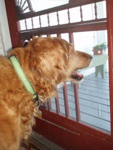 Rudy really likes to play catch outside and knows a lot of commands. He stays in the yard (unfenced) for the most part but made a social visit to the neighbor’s flower garden to smell the moss roses. He leisurely walked back when I reminded him where the boundaries were.