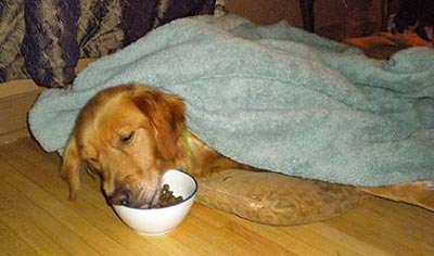Time flies when you are making a house your home, and Ramsey has been busy! Not only has he claimed most of the couch as his, he has shown his new mom and dad and brother Smokey what a loving, playful, and stinker dog he can be! It is hard to know that he had been so ill this fall. When we let Smokey and Ramsey tear through the snow in our back yard, Ramsey bounds around ears flying, chasing Smokey and wrestling, and Ramsey sees to love to tunnel his nose into the snow, coming up covered like a Frosty the Snow Dog. The winter which has been tough on his new parents, seems no problem for Ramsey!