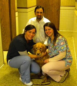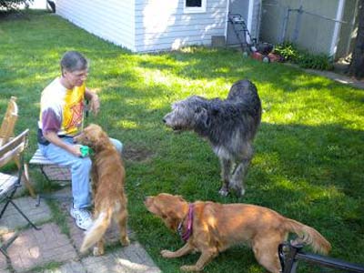 Ramsey has been to his mom's office at church several times already--but when free, he always seems to gravitate quickly to the church basement where the kitchen is located. Go figure! He's met several of the kids, he's so gentle and slow moving around them, that even those who 'had never seen a dog that big! " :) were taken with him and not scared a bit. Everyone who has met him comments on what a sweet dog he is, what a great coat, and how handsome he is. He's making friends in IA now, too.